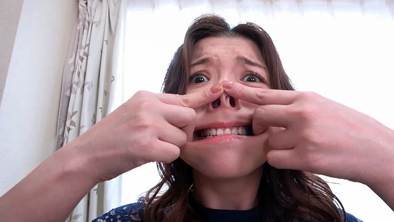 本作ではこれまでずっと1方向鼻フックが使用されていましたが、本チャプターにて初めて3方向鼻フックを装着した加藤さん。1方向鼻フックよりも強烈に鼻が広がる感触に羞恥心を感じています。